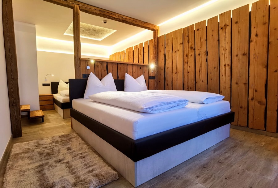 Welcome to Saalbach Suites by ALPS RESORTS! Enjoy a relaxing stay in a stylish junior suite featuring a balcony, modern bathroom, and cozy double bed — perfect for 2 guests. HIGHLIGHTS: ✨ Ski-out access: Glide straight from the slopes to your suite! ✨ Pure relaxation in the wellness area with sauna and large heated outdoor pool ✨ Free Wi-Fi and convenient parking right on the property ✨ Joker Card included – enjoy numerous extras and discounts on activities during the summer season.