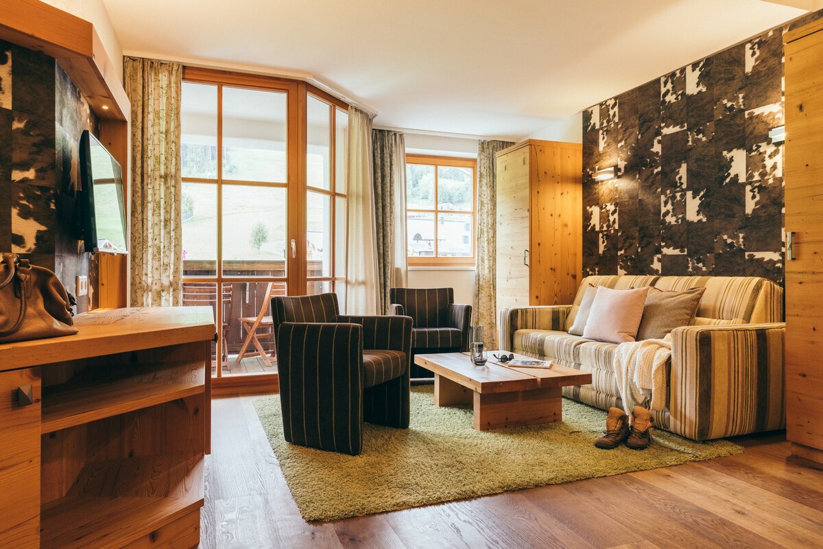Welcome to Saalbach Suites by ALPS RESORTS! Enjoy a relaxing stay in a stylish junior suite featuring a balcony, modern bathroom, and cozy double bed — perfect for 2 guests. HIGHLIGHTS: ✨ Ski-out access: Glide straight from the slopes to your suite! ✨ Pure relaxation in the wellness area with sauna and large heated outdoor pool ✨ Free Wi-Fi and convenient parking right on the property ✨ Joker Card included – enjoy numerous extras and discounts on activities during the summer season.