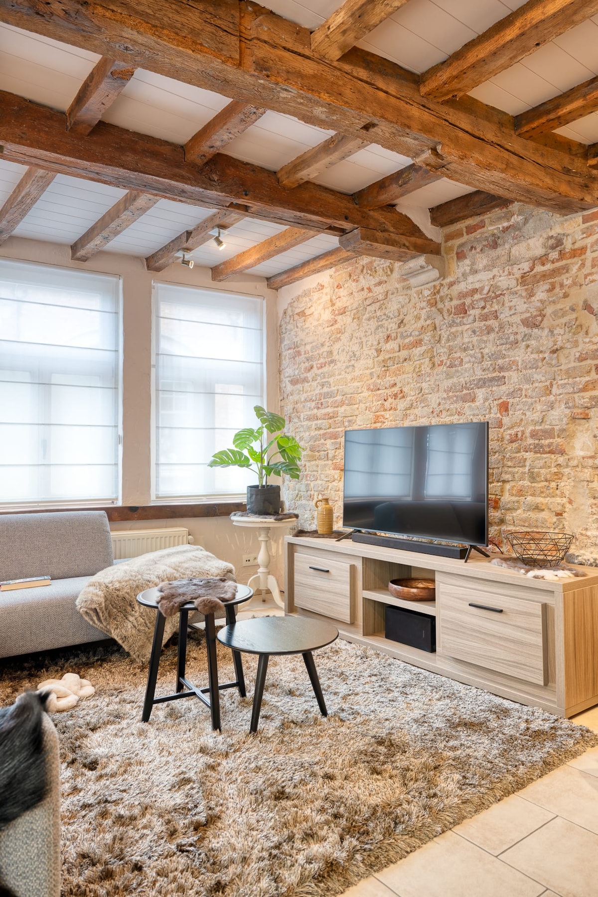 Romantic 16th-century townhouse in the historic heart of Bruges, featuring two bedrooms, two bathrooms and two sunny terraces. Perfect for two couples or a family of four, offering comfort and privacy. Located in a quiet pedestrian street just 2 minutes from the Market Square and Belfry. Beautifully renovated with respect for its original medieval character.