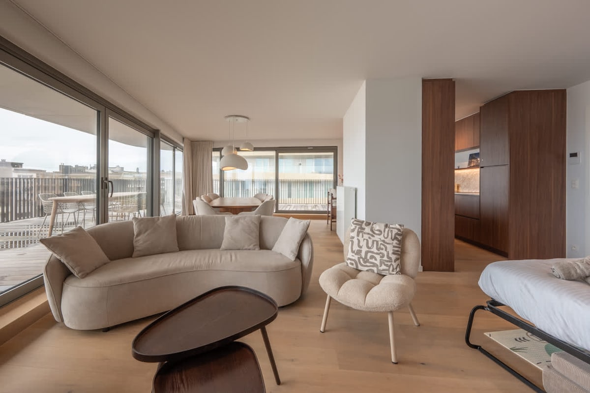 Op een boogscheut van het strand van Oostende, handig gelegen in het centrum, op wandelafstand van het station, ligt dit gezellig, hip appartementje ideaal voor 2 personen. Verwen jezelf en kom genieten van mekaar aan zee. Dit nieuwe penthouse heeft alle comfort en moderne voorzieningen. Naast een slaapkamer met grote smart TV, een keukentje en een badkamer, zijn er 2 grote houten terrassen, 1 met zijdelings zeezicht, een buitenbad en een buitendouche, alsook ligzetels en een elektrische bbq.