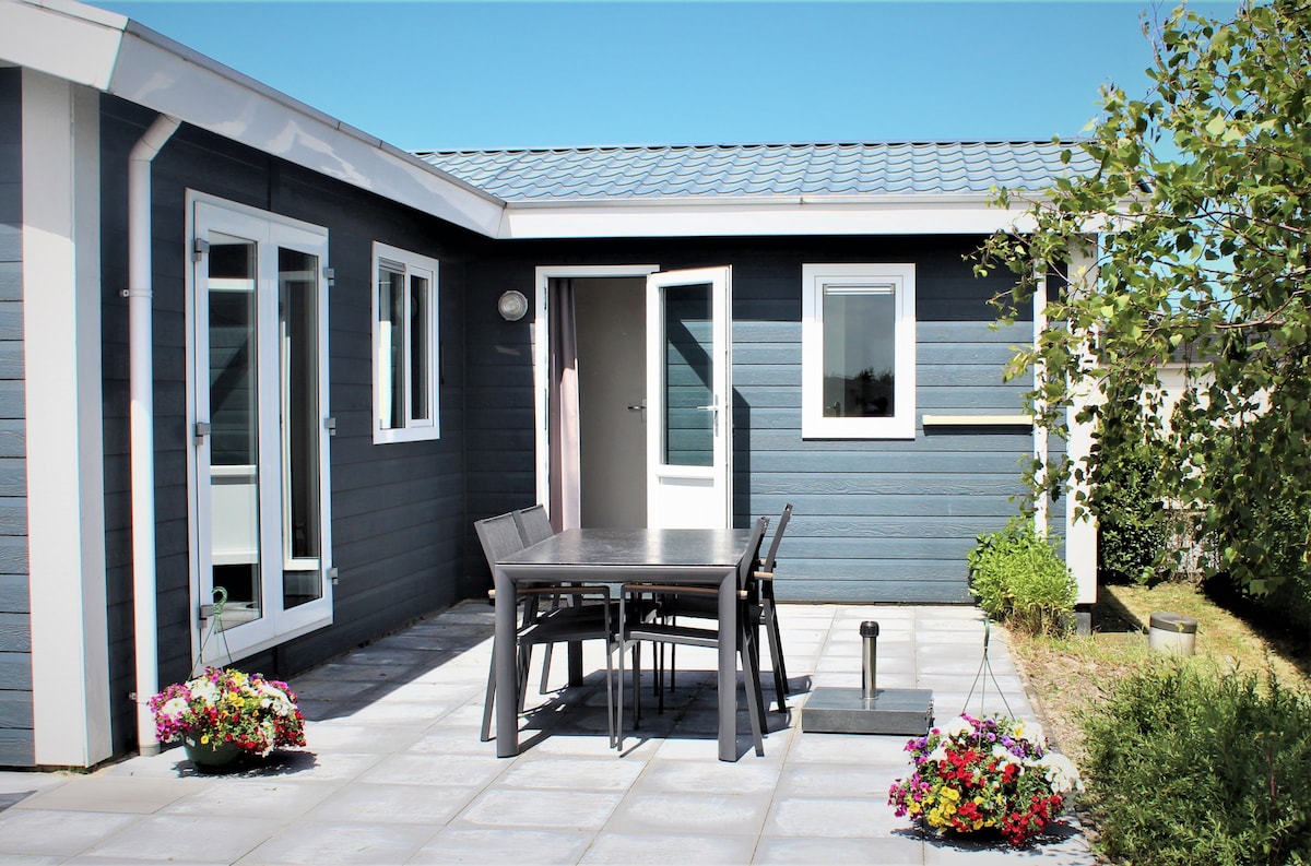 Luxe, Zeeuws vakantiehuis voor 2 personen. 2,7 km van het strand. Nieuw gebouwd 2022 . Incl. 2 fietsen en linnen. Een huisje in een Romantische ambiance, omgeving nabij de molen, een mooi privé terras met openslaande deuren, lounge set. Een gezellige ingerichte huiskamer met TV en electrische sfeerhaard. Keuken met inbouwapparatuur en benodigheden. Een moderne badkamer met luxe stortdouche, toilet en wastafel. 1 slaapkamer met 2 persoons luxe boksspring. Alles gelijkvloers. Max. 1 hond welkom.