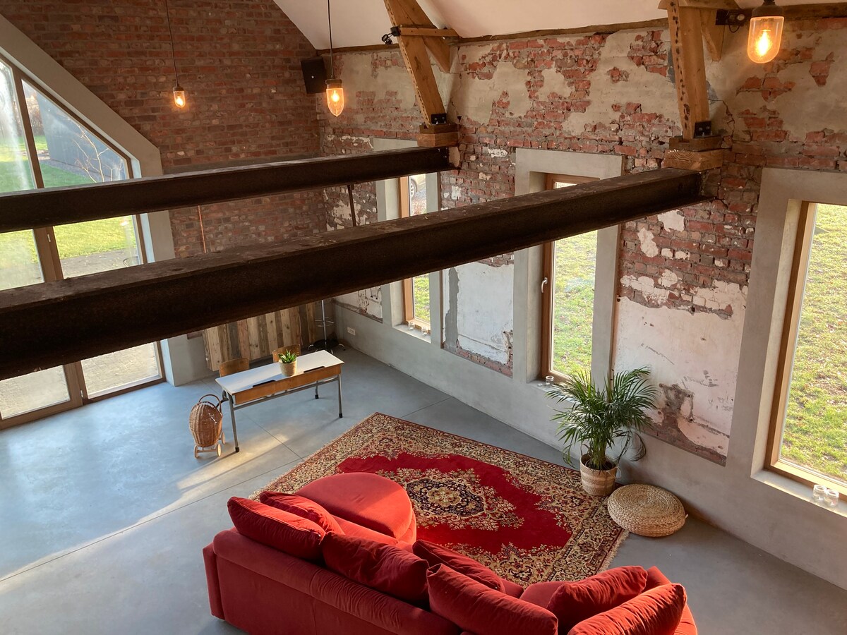 带有生态泳池、田野景观和猫头鹰巢穴的谷仓阁楼