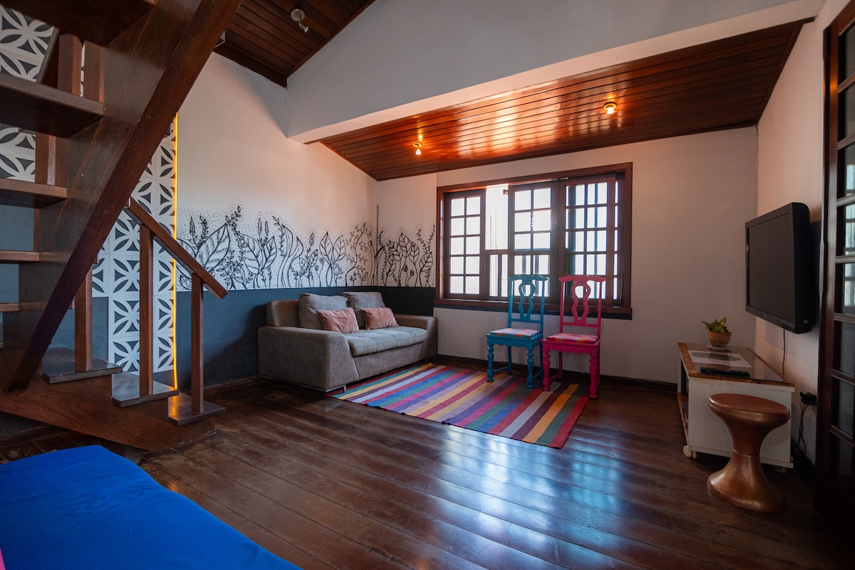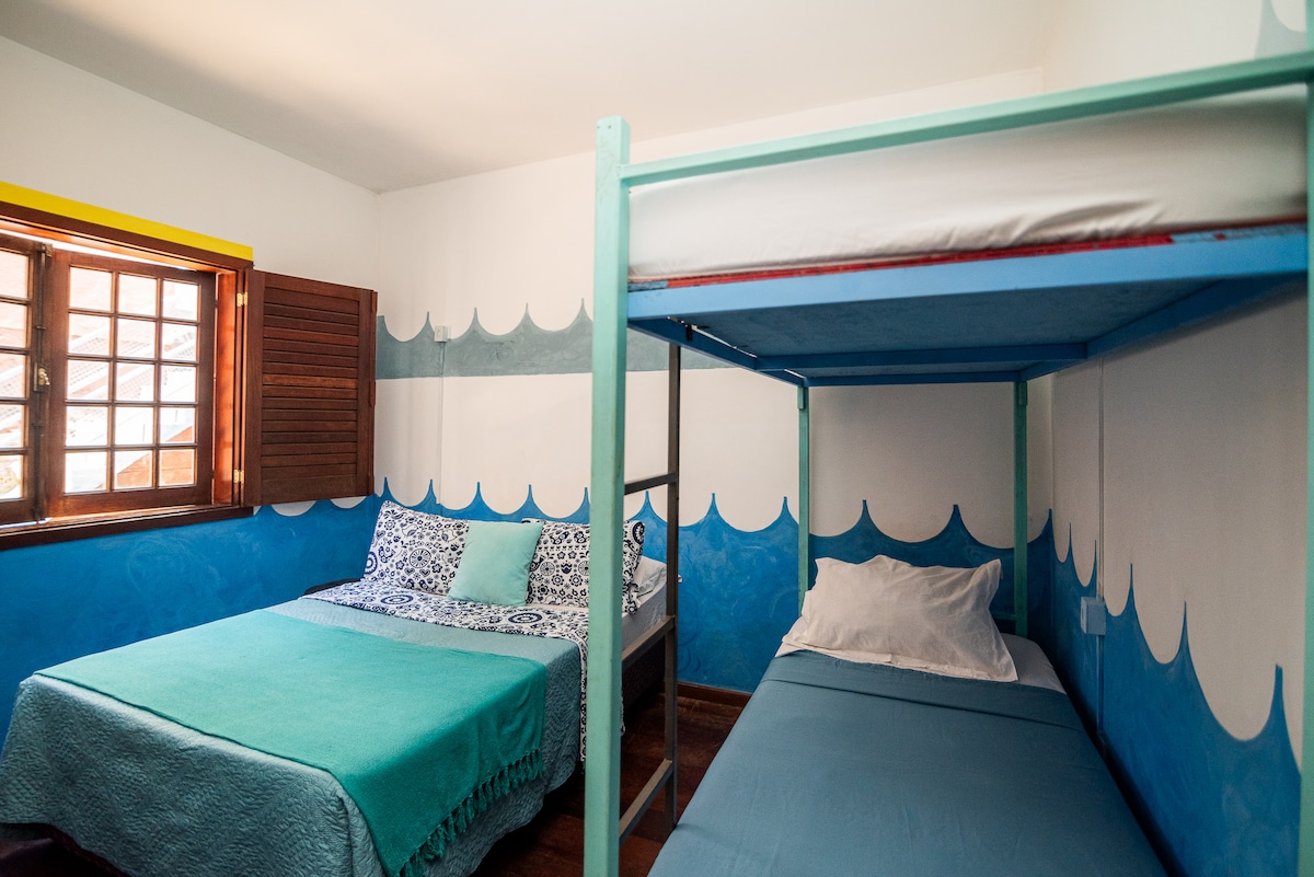 🛏️Quarto compartilhado misto - Casa da Árvore. 🧑🧑🧒🧒🧑🧑🧒Acomodação espaçosa com 7 camas de solteiro, ideal para receber grupos. 📍Estamos localizados na área central, próximo a mercado, padaria, comércios e restaurantes, a menos de 7 minutos do Inhotim! ☕️Serviço de café da Manhã disponível. Pague na acomodação.