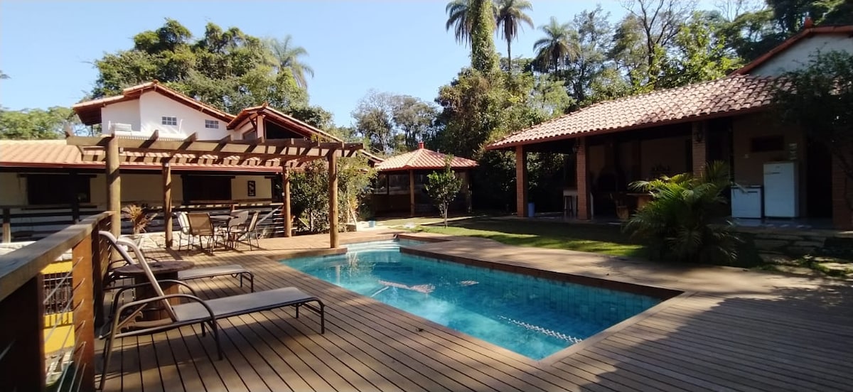 ** Latte check-out aos domingos e feriados Estamos na estrada de INHOTIM, próximo à Lagoa dos Ingleses, à 40min do BH Shopping, em condomínio fechado, tranquilo e sossegado. Área gourmet com: - Piscina privativa - Smart TV 4K - Churrasqueira e fogão à lenha - Jardim com iluminação automatizada - Quintal plano e cercado - Portão eletrônico, sem rota de fuga para PETs. Na nossa cozinha interna temos: - Fogão 5 bocas (gás canalizado) - Eletrodomésticos e utensílios - Panelas, louças e talheres