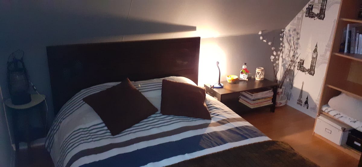 Nous habitons à la campagne, à 5 kms de Haguenau, à 23 kms de Strasbourg et à proximité des Vosges du Nord . Notre maison est en bois; vous logerez dans une partie de celle-ci (2 pièces en duplex - Chambre et Espace Bureau à l'étage - Pièce à vivre au rez de chaussée) à l'arrière de notre logement. Confortable, calme et lumineux, ce logement est parfait pour un couple. Votre entrée est privée. Les fenêtres du logement donnent sur le jardin. Vous pourrez profiter du terrain.