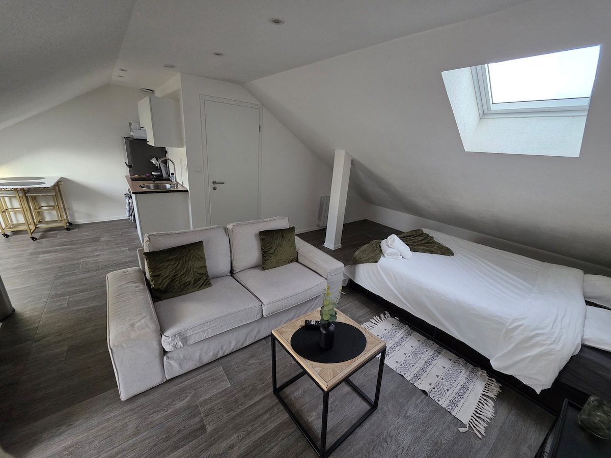 Ideal for a tourist getaway, business trip, training...this Studio will seduce you. Designed to ensure optimal comfort, you will appreciate the warm atmosphere that emanates from it Secure residence with guard and surveillance cameras Located in the foundry district – just opposite the KMO Campus digital city, Epitech Training and Ecole 42. Free parking space less than 10 minutes walk away Accessible to people with reduced mobility