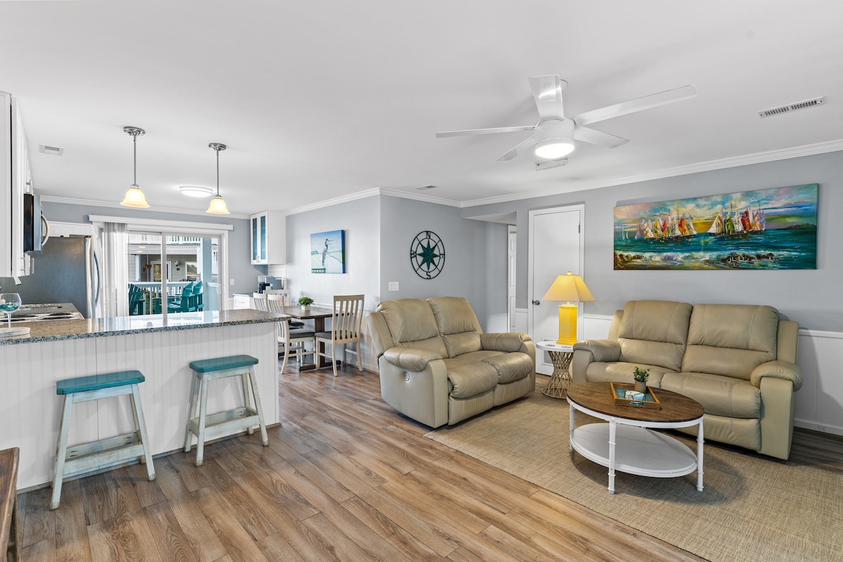 Welcome to The Crabby Pad #2 at Carolina Beach. This freshly renovated, cozy beach pad is perfect for relaxing and enjoying all this area has to offer. Only a 10 minute walk to the beach. Tons of shopping, excellent restaurants, and bars within a short drive or walk from the Crabby Pad, This upper unit has a large front deck to relax and barbeque. Also golf carts are available to rent. The golfcarts are 75.00 per day/350.00 per week. We do allow up to 2 dogs @ a fee of $65 per dog.