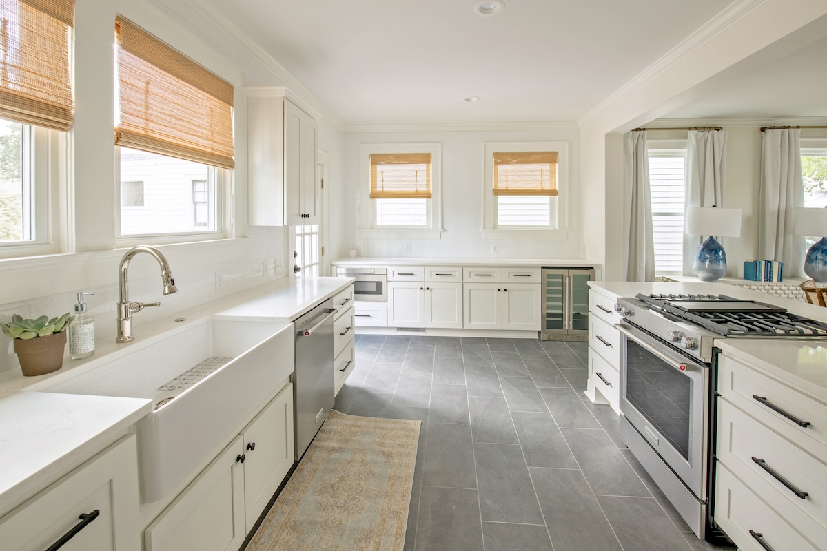 Relax in turn key luxury. This historic Wilmington home has been meticulously remodeled with the discerning guest in mind. Professionally designed and furnished to produce a delicate blend of modern and classic. Extras include beach cruisers for an easy ride to local breweries, restaurants, or the downtown Wilmington Riverwalk, gas grill or outdoor dining, fire pit for drinks on the patio, white noise machines in all bedrooms, smart TVs, and fiber mesh wifi system.