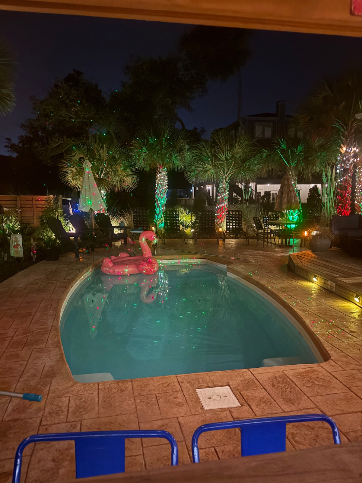 Private pool, pond views, gardens, and a 10 minute drive to the beach! This home backs up to a nature preserve. Relax by the pool and tiki bar area watching TV or enjoying music. Pool Heater: Our pool is open and maintained year round. The pool heater can reliably generate heat as long as the outside temperatures are above 50 degrees which will generally be from March to November, however in our area it is not unusual for us to have warm days at any time of year. Many vacation rental propert