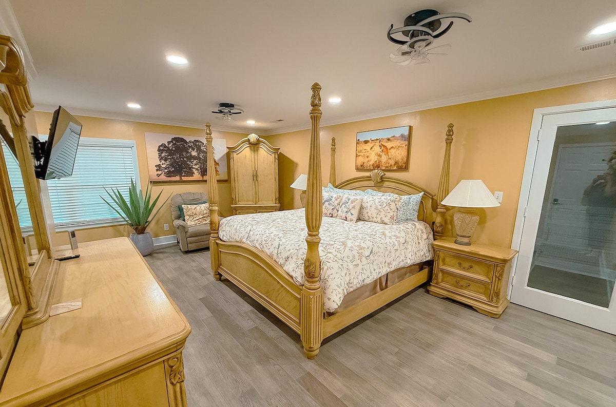 The charming guesthouse is conveniently located within a short distance of beaches, shopping, and food: Sunset Beach (12 miles), Ocean Isle Beach (8 miles), Holden Beach (9.7 miles), and Calabash (13 miles). This 500 sq. ft. newly remodeled guesthouse is designed to provide all the comforts of home. Equipped with a comfy queen bed, sofa, kitchenette (no stove), and clean open space. There is a shared driveway with the property owner who resides in the 75-year-old farmhouse being remodeled.