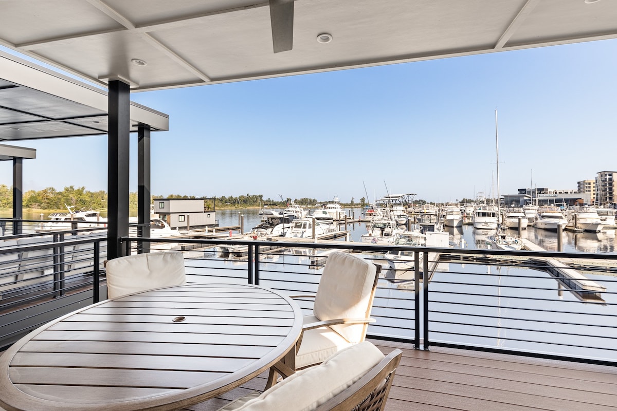 Welcome to "The Regency!" You will be living the "sweet life" on this modern, impeccably built and designed houseboat that offers all the amenities of home, including two living spaces, a gourmet kitchen, two beds, two baths, designer furnishings, and a deck to enjoy the sunsets on the Cape Fear River. Close to everything! Enjoy an onsite restaurant and entertainment pier, where concerts and festivals are held. Stroll the Riverwalk for scenic views, shopping, restaurants, and entertainment.