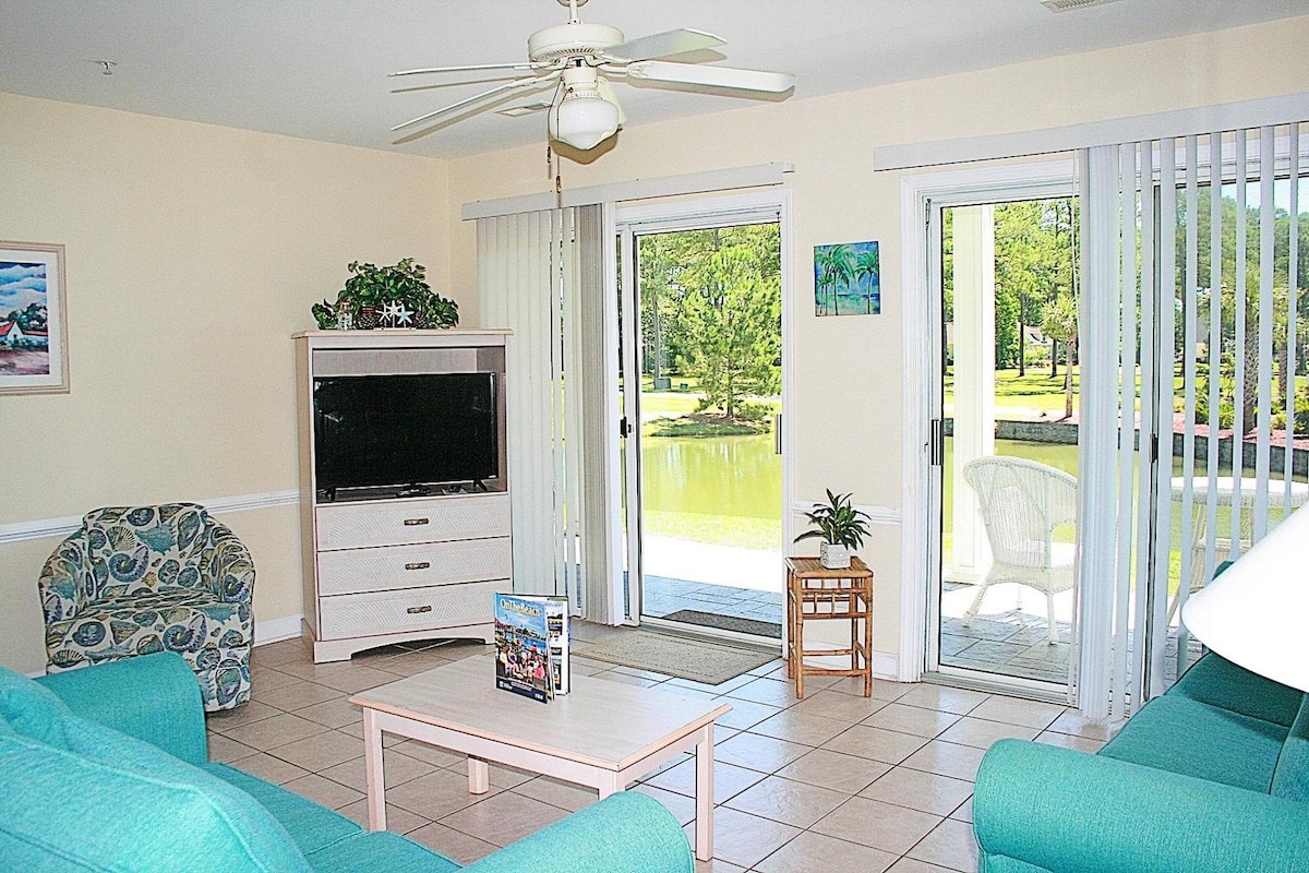 Relax and unwind in this newly renovated spacious 2-bedroom, 2-bath villa in Sea Trail’s Champions condo neighborhood. Featuring 4 Queen beds, golf course views, screened-in porch, large kitchen, and flat-screen TVs. Ideal for family getaways or golf retreats. Just 1.5 miles from Sunset Beach. Guests must be 21+. This offers everything you need for a peaceful retreat. Enjoy morning coffee on the screened-in porch overlooking the golf course, or relax in the spacious living area.