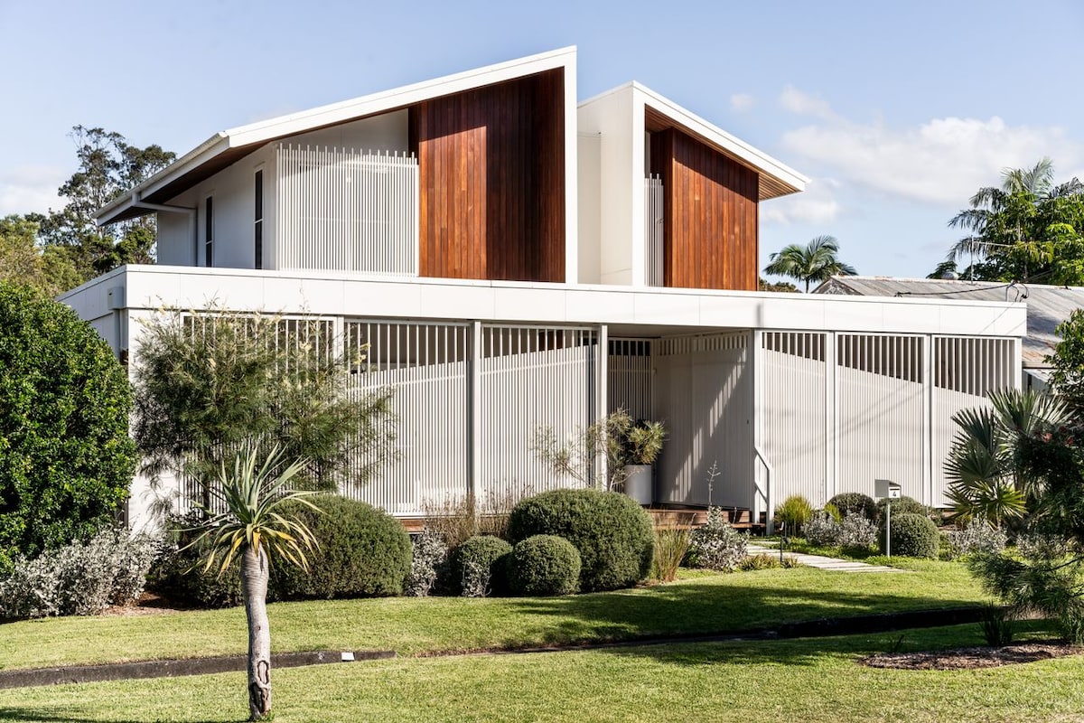 Spacious, private and comfortable top floor apartment with exclusive entrance through own enclosed Franjipani gardens. Generous light-filled living areas and breezy balconies. Extra large master and queen bedrooms with treetop views. Quiet location opposite nature reserve. Outdoor bbq/ daybed/ dining/ firepit in beautiful secret garden. 2 minute walk to river in Bruns. Walk to beach, cafes, restaurants, bars, pub, shops, markets and enjoy the simple pleasures of our special riverside village