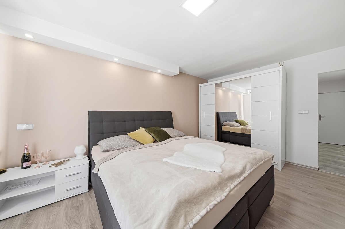 Be warmly welcomed in the quiet village of Karlovice, in the valley of the river Opava. Apt with 2 bedrooms, 4 fixed beds + 2 basic mattresses. You can use private parking with a gate, your own terrace, a common garden and a fireplace. We have prepared for you many tips from the area based on our own years of experience. 15 minutes to Karlova Studánka, 20 minutes to Praděd. Inn and shop Hruška (also open on weekends) across the street.