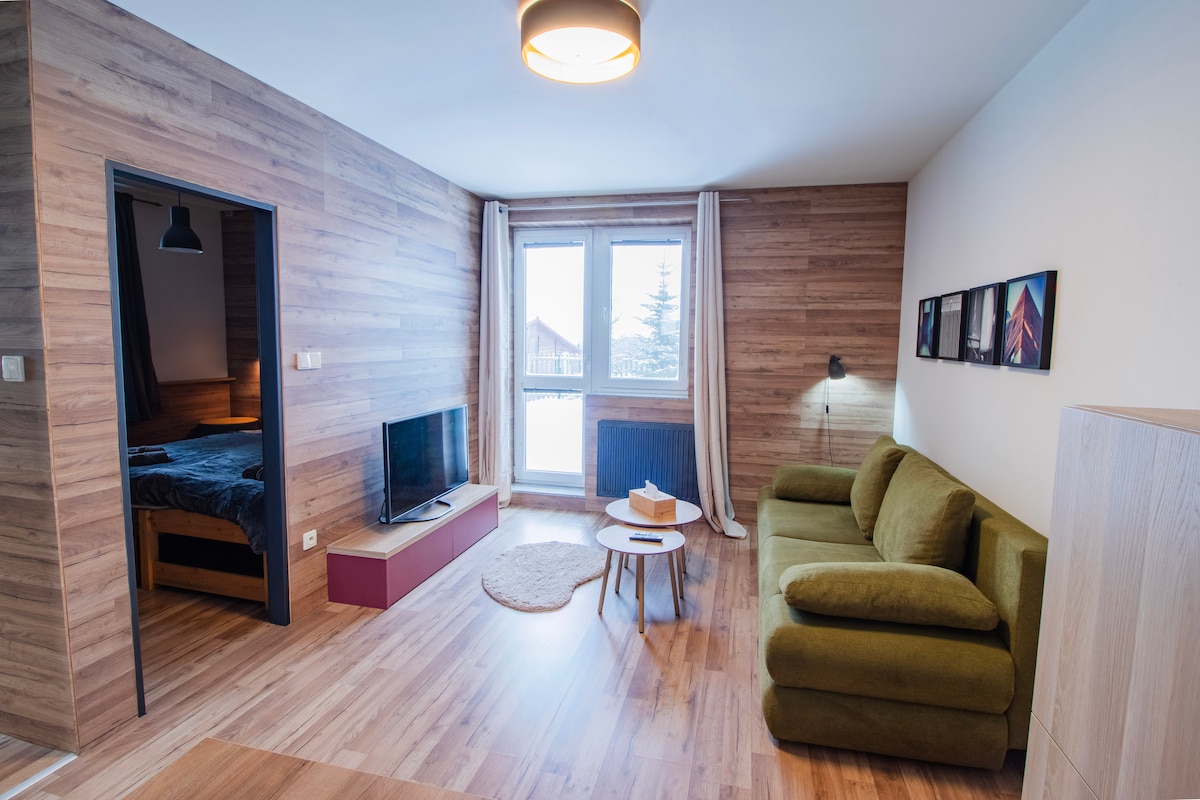 ♥Pokud máte dotazy nebo speciální požadavky, napište nám♥ Užijte si klidný pobyt v útulném apartmánu, který se nachází jen kousek od malebného lesa. Moderně zařízený apartmán je ideální pro milovníky přírody, turistiky a relaxace. Apartmán nabízí manželskou postel, dvě jednolůžka a rozkládací pohovku, plně vybavenou kuchyň, WiFi a bezplatné parkování.