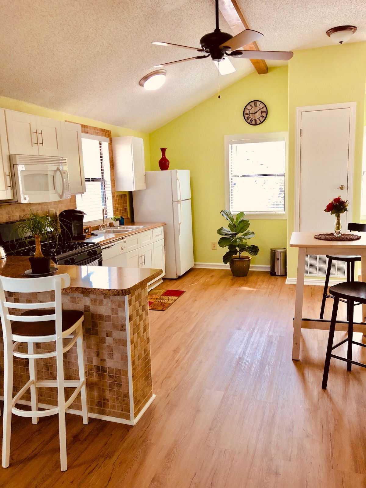 Welcome to your peaceful and private studio apartment. This Austin themed retreat features a comfortable Queen-size bed, twin pull-out sofa, small kitchenette, keurig coffee maker, mini fridge, and convenient portable convection cooktop; walk-in shower and a front porch as well. Enjoy the private entrance and separate side yard area, ideal for pets and relaxing in this calm and quiet space. Please note there is no separate bedroom, ideal for the 1-2 people-3 max. Extra fee more than 3 guests.
