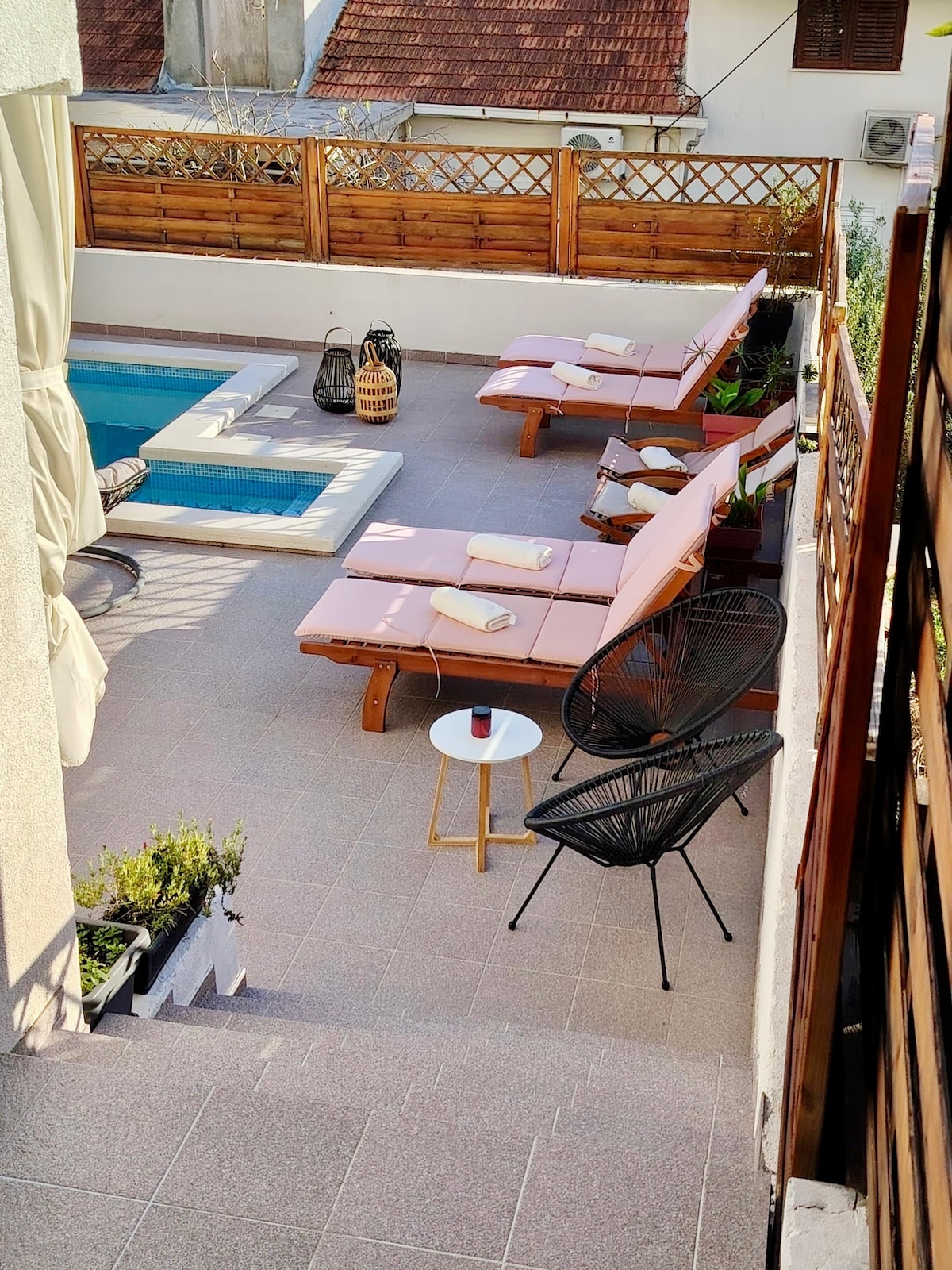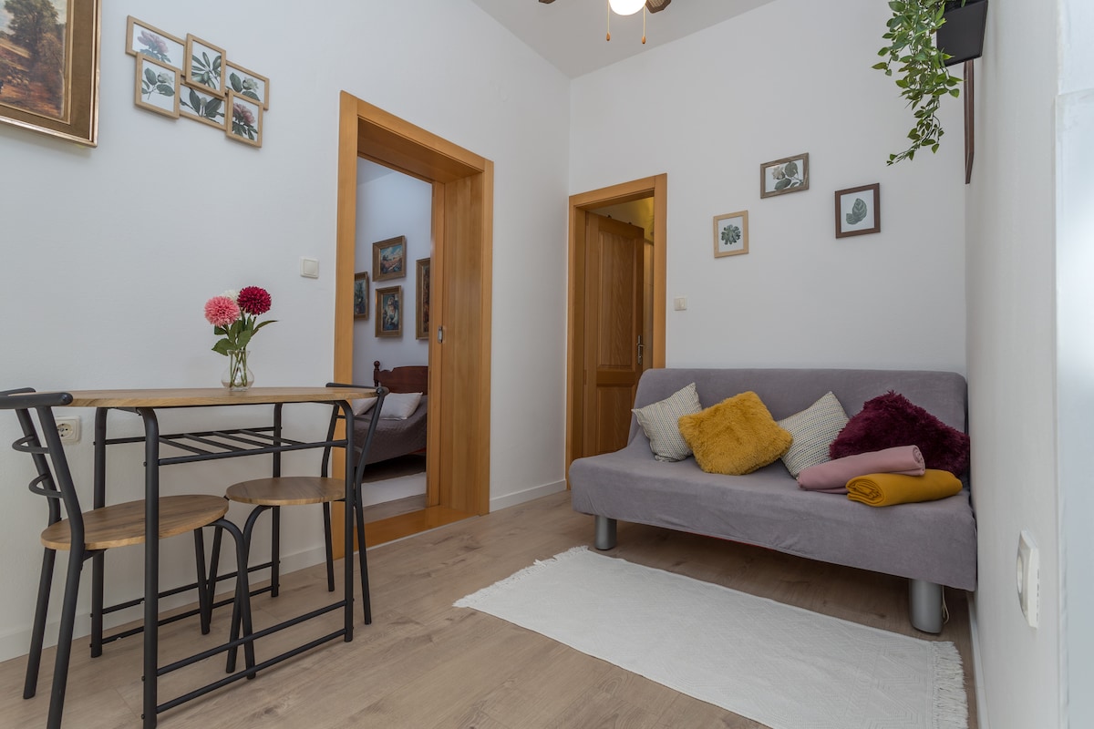 Our lovely apartment for two, which was just renovated in January 2025 with a new bathroom in a modern style, will delight you with its warmth and simplicity and will make your holiday special and unforgettable. A lot of effort and love has been put into it to make our guests feel good in it. You have a private terrace that is lit by the sun with a seating area and deck chairs where you can relax. From the bed you can enjoy watching movies on Netflix.