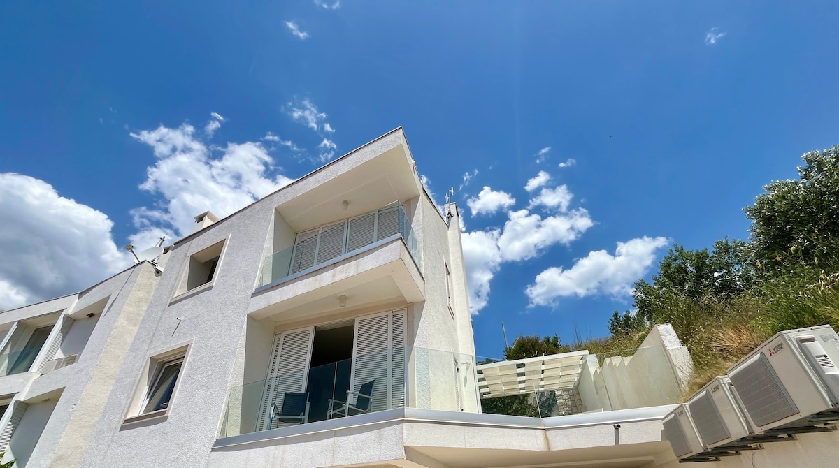 You will enjoy this beautiful and artistically decorated apartment. Apartment is newly furnished and perfect for couples. It has balcony, see view and amazing look on beautiful sunsets ,and consists of kitchen with dining room, room and a bathroom. Apartment has a good location, just a few minutes walk from town center, clubs and beaches.