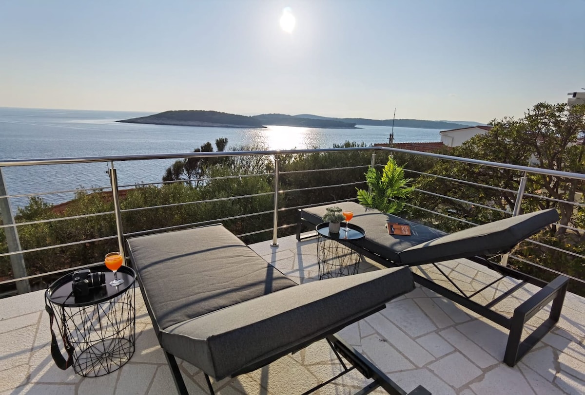 The newly renovated house is located in a quiet part of the town of Hvar. The greatest treasure of the house is the terrace overlooking the sea, which is equipped with everything you need for an unforgettable vacation. All rooms in the house are air-conditioned. You are 300 meters away from the largest beach, and a 10-minute walk along the coast from the city center. There are several shops, restaurants and bars 5 minutes from the house.