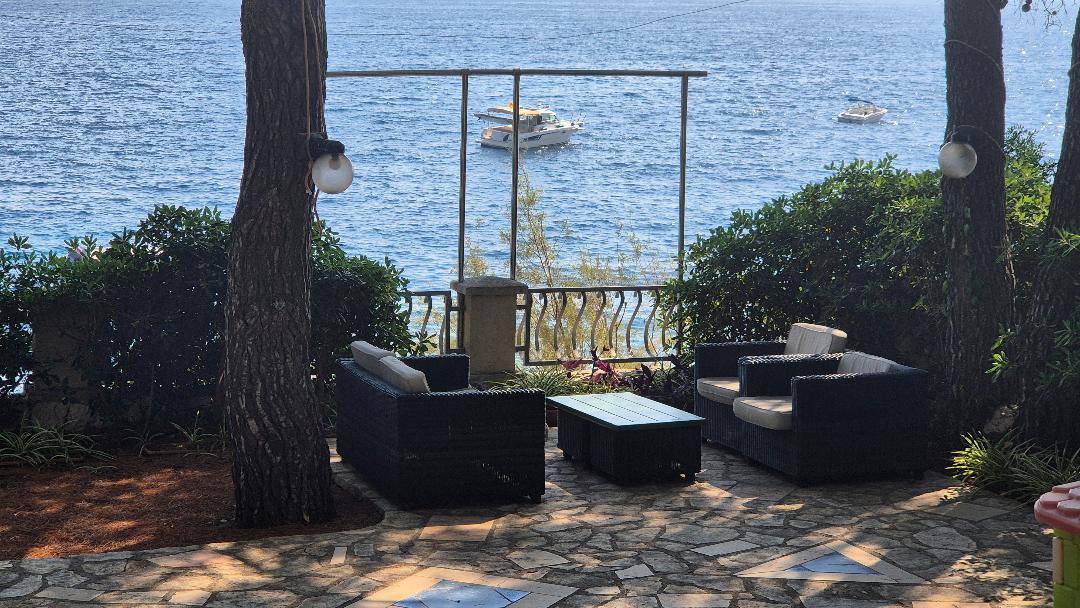 Only five meters from the sea with a great view on the sea, Milna cove and the sunsets. Parking, fully equipped kitchen, TV, air conditioner, balcony, WiFi... It is located in the quiet village Milna with 4 beautiful beaches and breathtaking nature. Queen sized bed. Our best selling apartment.