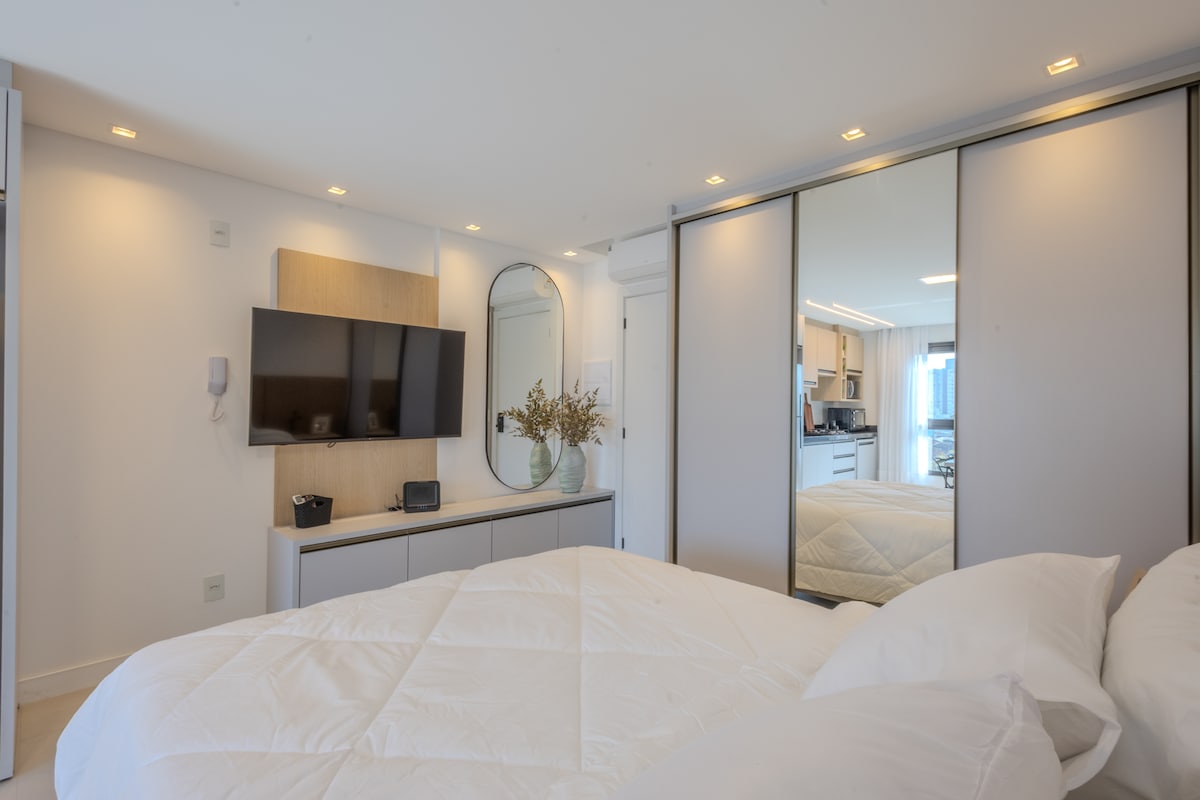 Moderno apartamento studio, localizado à 300mt do parque Vila Germânica - local de eventos como a Oktoberfest. Rodeado por restaurantes, bares, fica próximo ao Parque Ramiro Ruediger, principal área de lazer, caminhadas e exercício de Blumenau. Tudo para o seu conforto: smart Tv 43", ar-condicionado split, wifi fibra 240mb, cozinha completa com geladeira Brastemp, microondas, fogão, cafeteira, forninho, lavação com lava e seca, armário de roupas, e é claro uma cama queen convidativa!