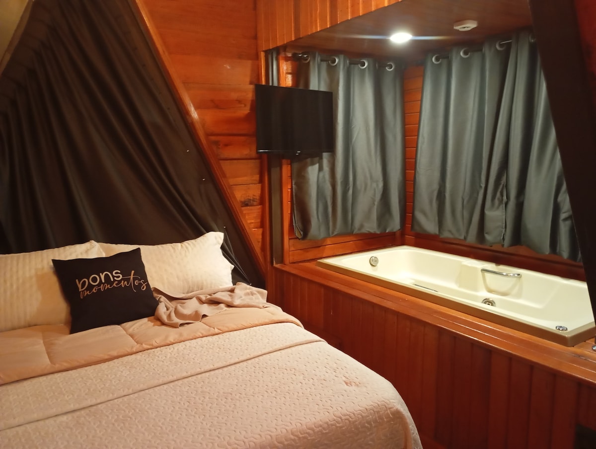 Na cabana Pukuá você poderá pegar no sono contando as estrelas, isso porque em cima da cama há uma clarabóia. Além do quarto com espaço para home office, você poderá relaxar no sofá (ou rede) em uma sala super aconchegante. Jogos de tabuleiro, Netflix, Prime, Disney e Star GRATUITO? temos! A cozinha é equipada com tudo o que você precisa. Nossa Cabana mistura o rústico com o conforto e cada detalhe foi pensado pra deixar sua estadia o mais agradável possível. Banheiro espaçoso e privativo.