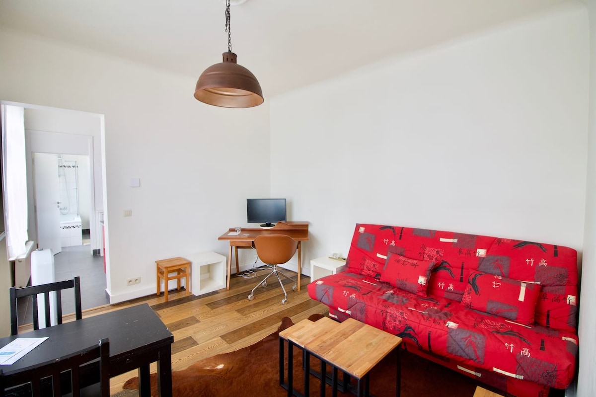 Penthouse in the sky ! A 35m² studio with a BIG 20m² terrace, ideal for Aperol spritzes a few steps away from Place Stéphanie. The inside is snug and simple, the outside is pure magic, high above, on a rooftop. This penthouse packs a punch with its private terrace and elevated views over Brussels. A hidden gem for solo adventurers or couples looking for outdoor space in the city. Clean, bright, and well-situated for public transport and shopping. 1 double bed | 1 shower | 1 big terrace
