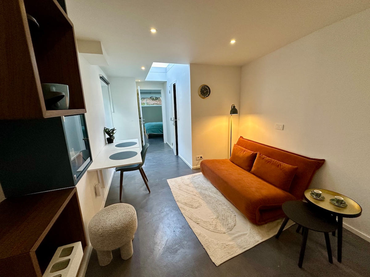 Cozy tiny house with large bedroom and private bathroom and toilet, overlooking the patio full of flowers and hammocks (in Summer). The place is part of a larger apartment situated in a typical Brussels house, ideally located at 2 steps from Saint Boniface and place Fernand Coq with its many restaurants and bars. The shopping street, with bus and metro stops, is just around the corner. The prestigious avenue Louise is a 5min walk and the historic city center is 15 min walk away.