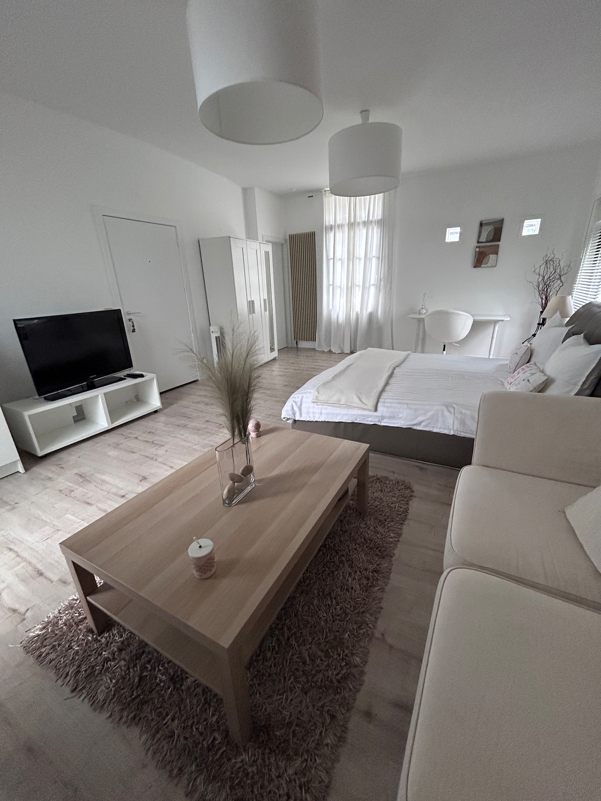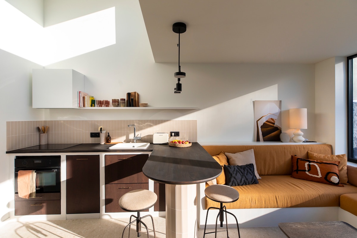 Le Saint-Bernard Hideout A freshly renovated, ultra-comfy smart apartment in the lively heart of Saint-Gilles, just steps from Avenue Louise & Place Stéphanie. Enjoy high-end comfort with a fully equipped kitchen, adaptive A/C in every room, fiber Wi-Fi, and TVs in both living and bedroom. Whether you’re here for work, leisure, or a romantic escape, it is a perfect base — a peaceful, tech-savvy cocoon in the lively heart of Brussels.