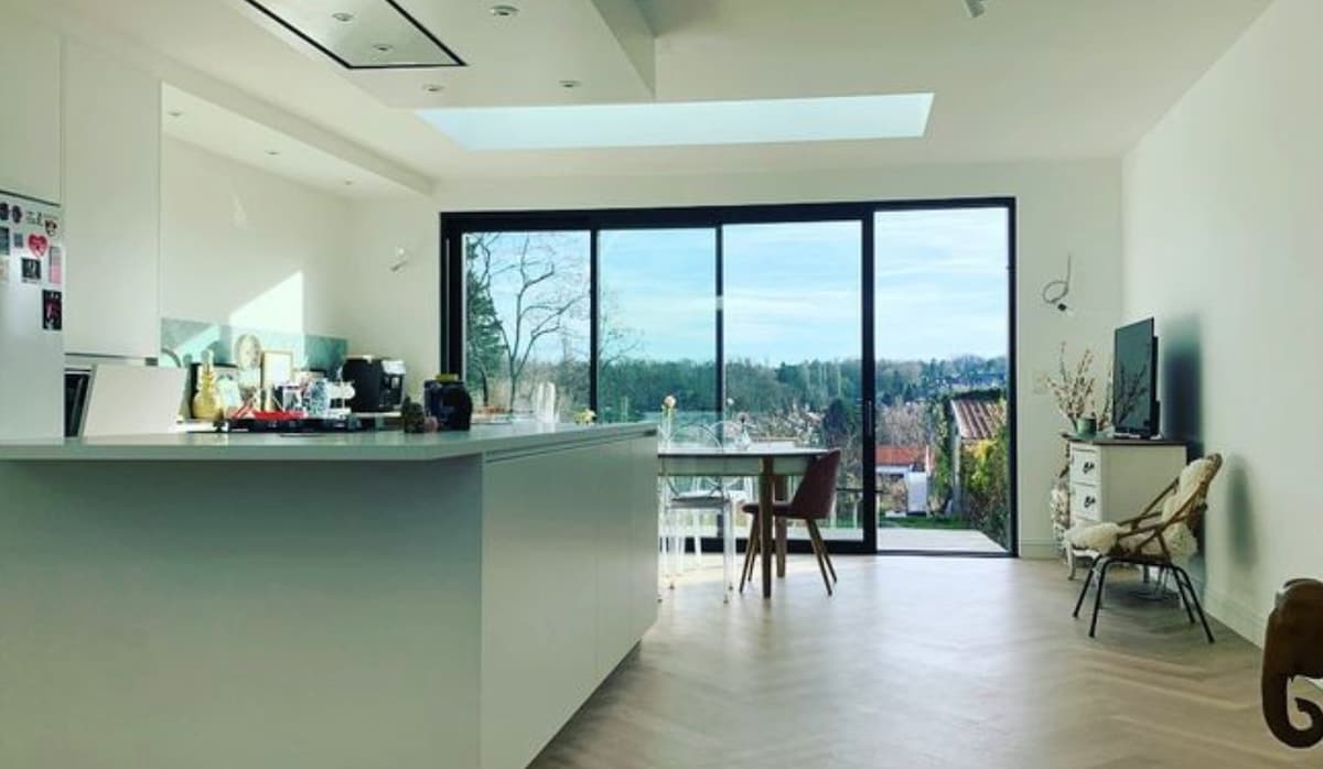 Beautiful home in a green and peaceful environment. Enjoy the fully equipped kitchen, the U-shaped living room, the garden and little forest with a zip-line cable and swings! Two large bedrooms and two small one in a lovely house. Brussels is a few steps away. The house goes from 200 to 110€ because the future wooden floor of the living room is stored on the ground in the dining room. The living room, the dining room, the kitchen form a single "L" shaped room. So you will see the stored wood.