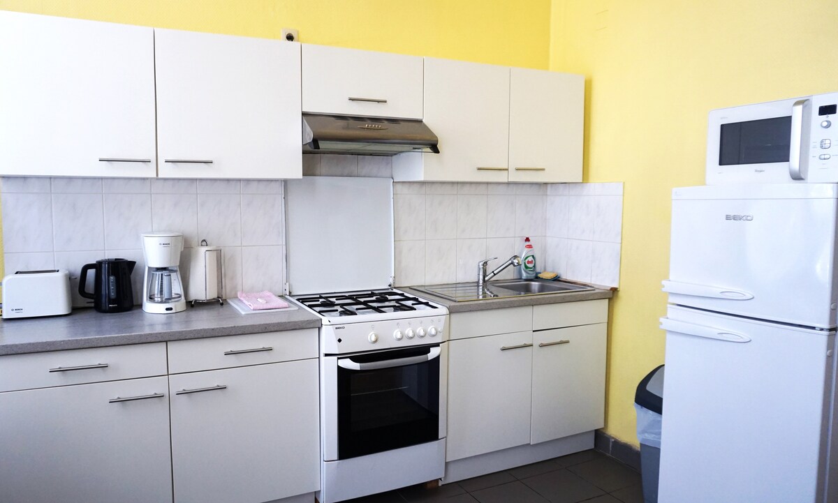 All of our flats come with a kitchenette, a separate bedroom, bathroom and cable television. We also offer free use of washing and drying machines to do your laundry as well as a shared kitchen where you have the possibility to cook and/or eat together with family, friends and colleagues.
