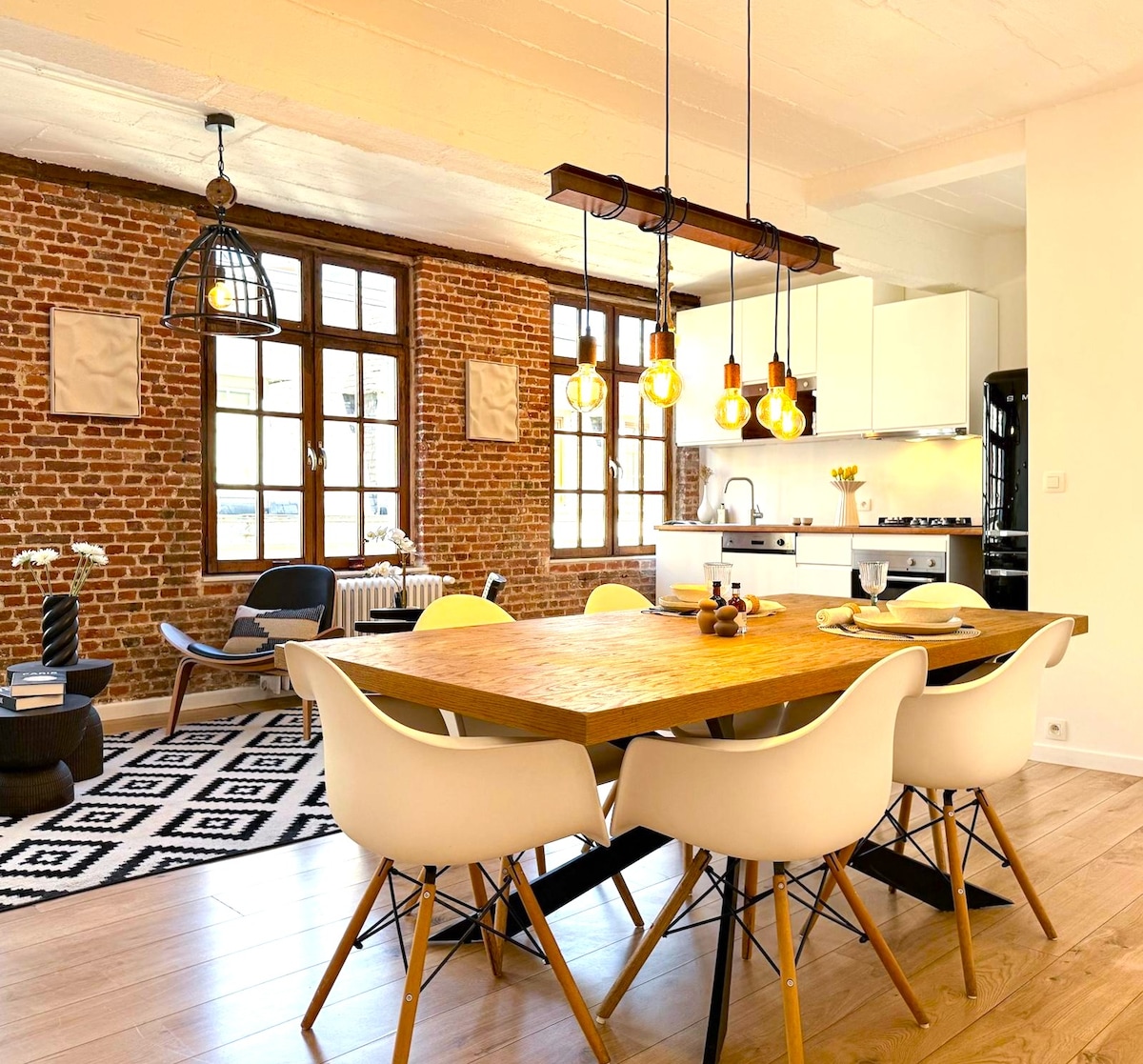 Reservations are exclusively available to verified profiles with positive feedback. The loft, 155m², is a converted warehouse originally built in 1924. It is situated in the canal zone, close to the iconic Tour & Taxis business center and exhibition complex, which is easily accessible via a newly developed park. Once an abandoned industrial quarter, the Tour & Taxis neighbourhood is now undergoing a rapid and fascinating transformation, guided by modern social and sustainability principles.