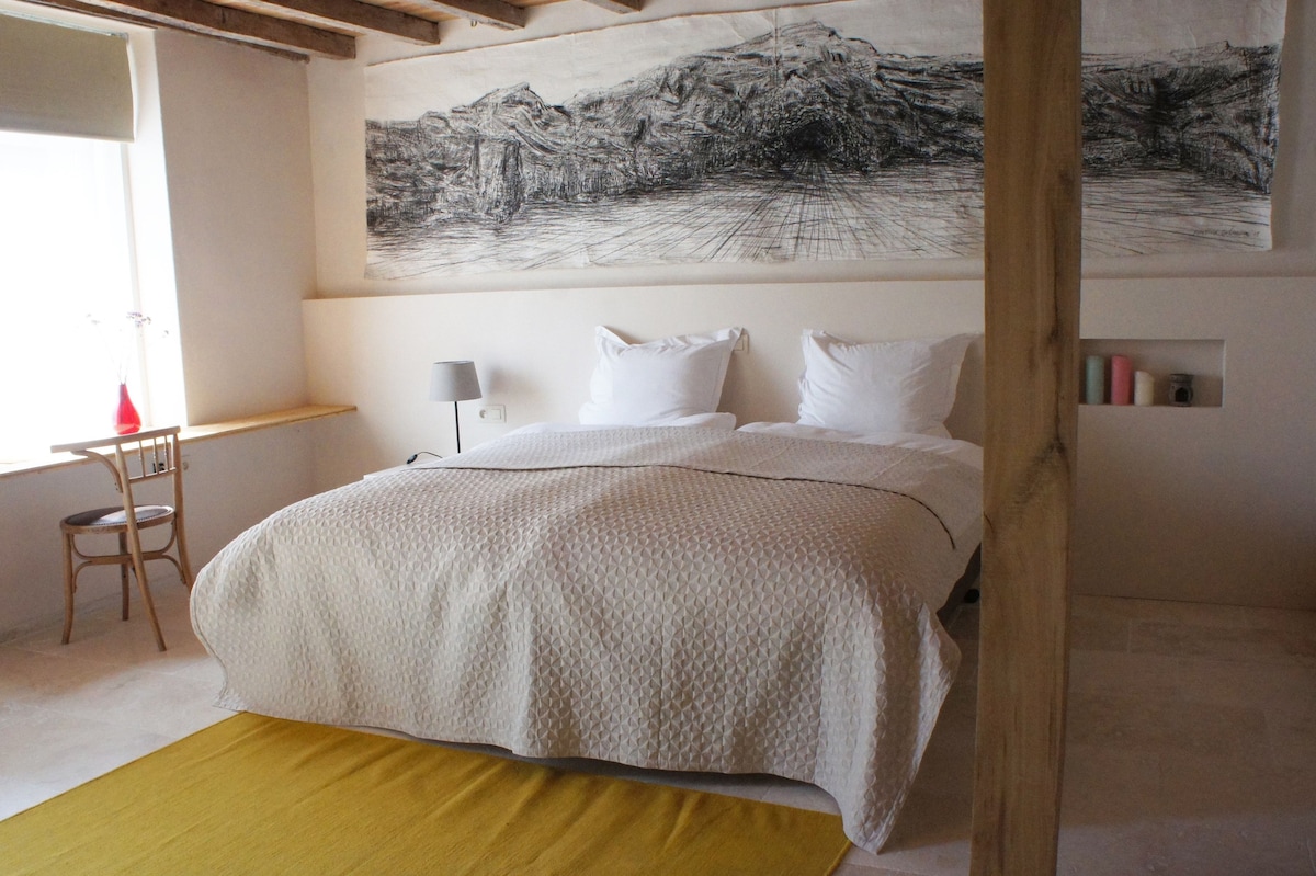 Lumineux grenier à foin rénové en 2021, au 1er étage de nos bureaux, avec belle vue sur nos potager et verger. Accès privé à un studio de 40m2 (avec 1canapé-lit, 1table à manger+frigo,micro-ondes,café,thé,eau,1bureau, 1salle de douche+WC), 🅿️gratuit dans la cour et accès privé à votre jardinet de charme avec chaises,table&transat. En option payante:recharge électrique,vélos, prairie clôturée avec box+eau pour max2 chevaux. Merci pour votre confiance, on se réjouit de vous accueillir. L&N
