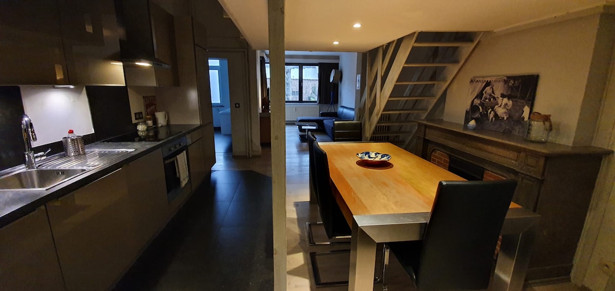 1min from railway station, "garden cottage" separated from the main house (where we live). set amidst a historical garden. It is 70 m² with a split level, and offers accommodation for 6 people. It has a dining table, TV, netflix, Wifi, and a brand new kitchen, small bathroom, . direct connection bij train to central Brussels and Leuven (20min). It is suitable for business travelers, couples, (also long term), groups and families (6p in 1 room, only short term)