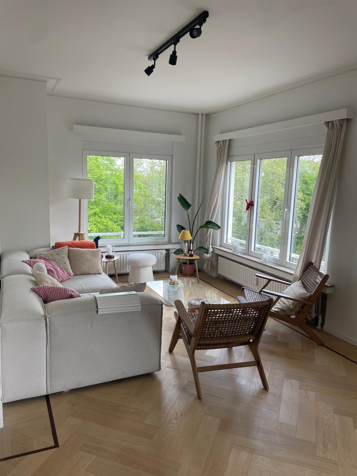 105m2 cosy well positioned apartment (15 mins to central Brussels and 15 mins to Brussels Airport or NATO HQ) with belle époque style furniture, fully equipped kitchen, large matrimonial bedroom, office with an extensible sofa, large bathroom and closed terrace/balcony. Nice 5th floor panorama on the front with the Brussels center skyline visible, quiet and green view on the back opening towards a tennis club. Ideal for a couple, pets on request only! Registration number: "31000003941"