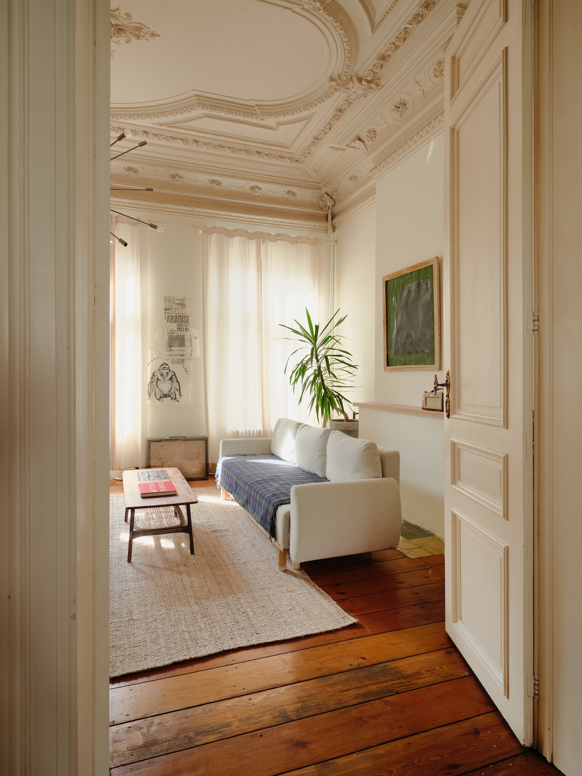 We're renting out our spacious three-story house, a fine exemple of Brussels "maison de maître" from the beginning of the 20th century. The house is full of grandeur and charm, with its 4,5 m high ceilings adorned with intricate cornicing and is furnished with mid-century furniture and art. The spacious walled garden (18mx7m) is a leafy, private and peaceful oasis in the heart of Brussels. We are very close to many striking art nouveau architecture examples Grand Place is a 20 min-walk away.