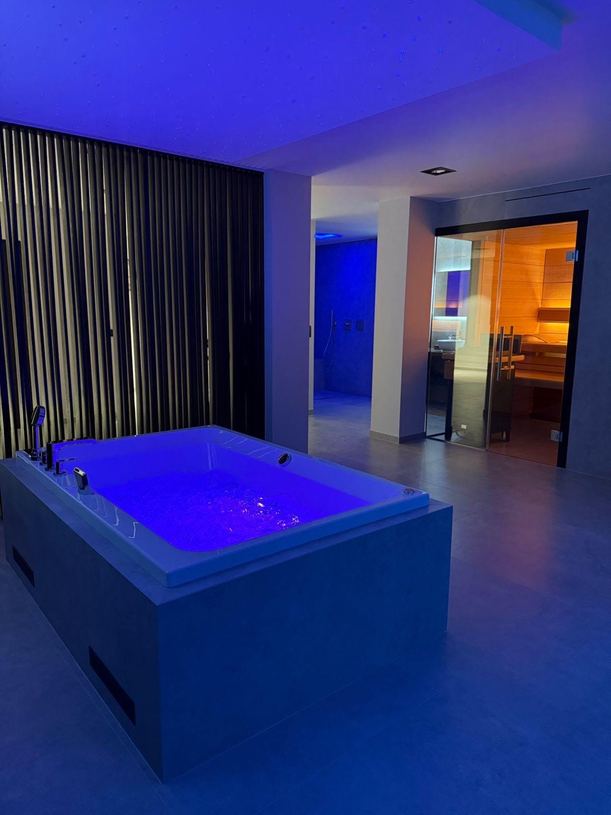 Evadez vous dans un spa privatif haut de gamme avec nuitée romantique. Profitez d’un bain balnéo, sauna, feu ouvert au gaz et lit boxspring pour un confort absolu. Deux Smart TV connectées avec Netflix, Wi-Fi, salle de douche et toilettes modernes complètent l’espace. Coin café, minibar, suppléments disponibles : décors, boissons et petit déjeuner (40 € pour 2). L’expérience idéale pour un moment unique à deux.