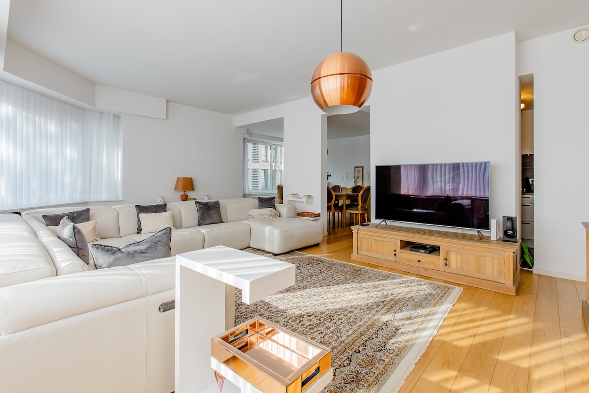 Penthouse de luxe de 200 m² situé au cœur du quartier européen de Bruxelles. Parking sécurisé, finitions haut de gamme, 2 chambres avec un lit double chacune avec des draps de luxe. Deux terrasses, l'une avec une vue panoramique et un sauna, et l'autre avec une table à manger, un barbecue et un jacuzzi. Nous proposons des services complémentaires sur demande (petit-déjeuner / brunch, dîner, vin sélectionné par notre sommelier, massage).