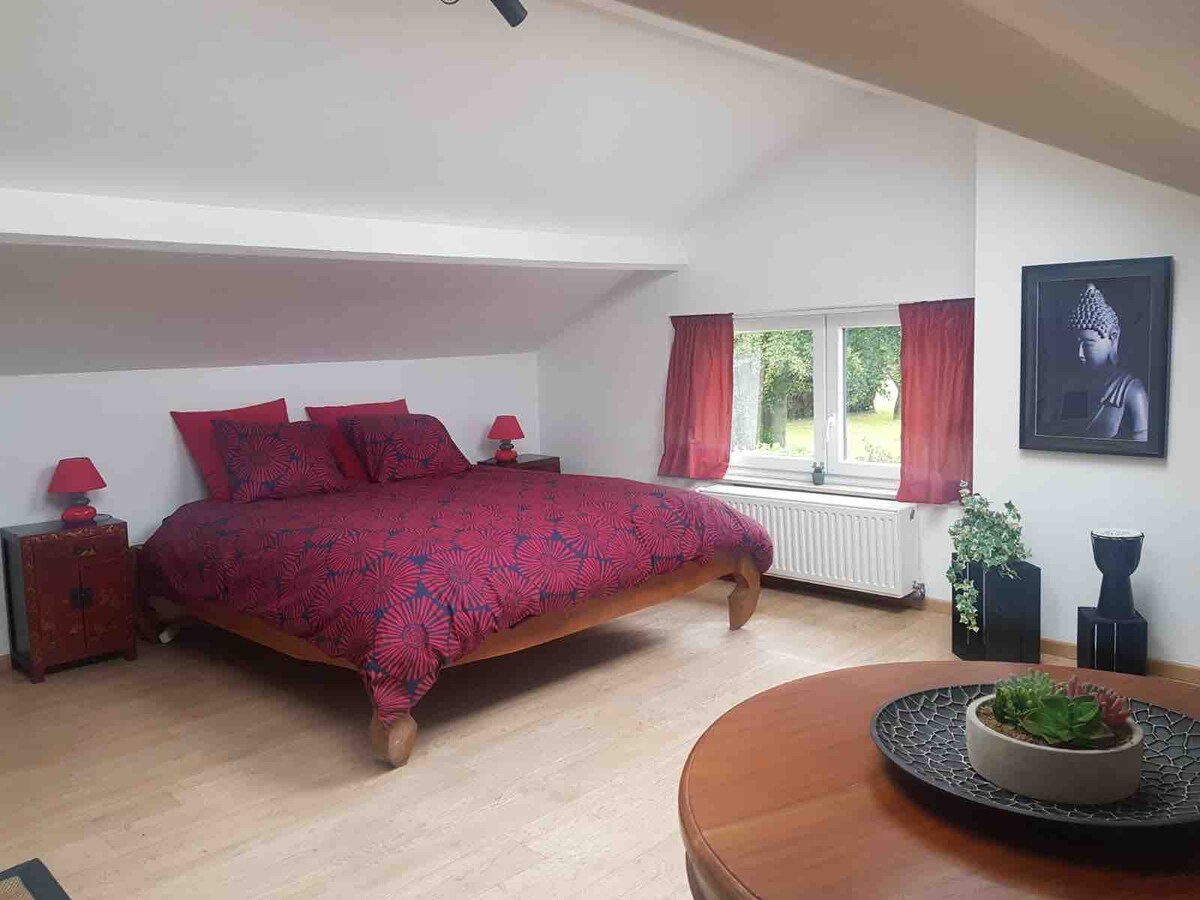 Mini loft met een vrijstaand bad, rustig gelegen in een groene omgeving. Op wandelafstand van het Bruegel bezoekerscentrum in de Pede Vallei. 20min rijden van het centrum van Brussel. Mogelijkheid tot ontbijt en gastentafel, bereid met streek- en biologische producten.