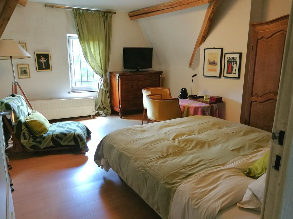 Enjoy a house decorated with lots of paintings and sculptures and a huge and quiet garden with a greenhouse and vegetable garden. Weather permitting, you will be able to take advantage of a beautiful garden tended with love and care. Our experience, and the one of our guests, is that there is a positive energy radiating in the house.