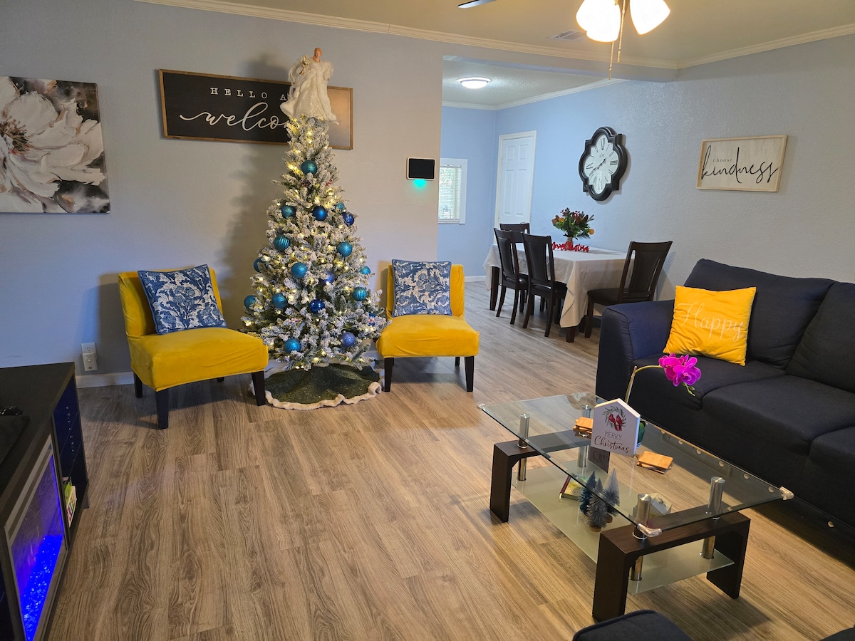 🎯 Fully themed Denison getaway 🎬 Theater-style living room for movie nights 🎮 Gaming bedroom w/ retro console + 2 arcade games 🌌 Star Wars bedroom for Jedi dreams 🚚 Classic trucks master bedroom 🌳 Shaded backyard & large balcony for grilling & wine 🍷 Close to downtown shops, restaurants & wineries 🏞️ Short drive to Lake Texoma, Choctaw & more 🛏 3 beds | 🛁 2 baths | Sleeps 6 ✔ Fast Wi-Fi ✔ Smart TVs ✔ Gaming ✔ Stocked Kitchen ✔ Washer/Dryer ✔ Free Parking