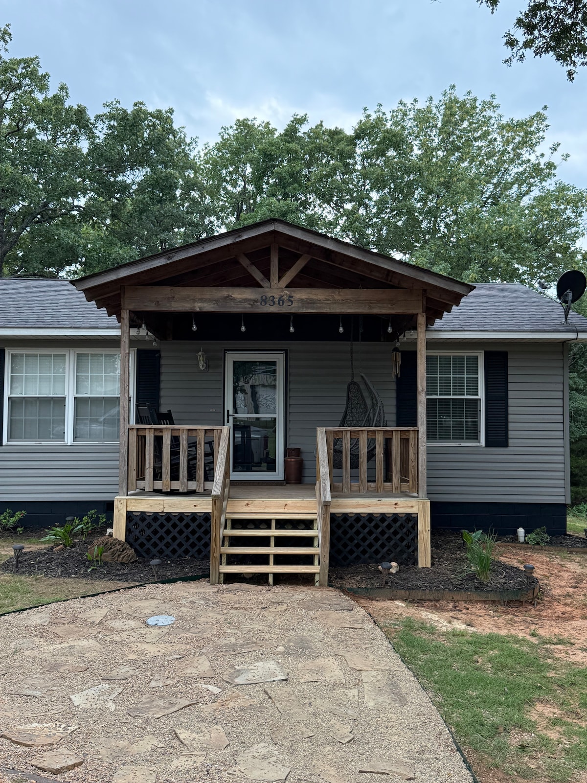 BEAUTIFUL COZY CABIN FOR YOUR FAMILY!!! This beautifully decorated 700 sq ft. cabin has everything you need for your perfect getaway. Just a 45 minute drive north of McKinney located on 2.5 acres. You can sit back and enjoy the view of the trees while rocking of the front porch with your morning coffee. Located only 10 miles from Lake Bonham, this cabin has a full kitchen equipped with everything you need for a country escape.