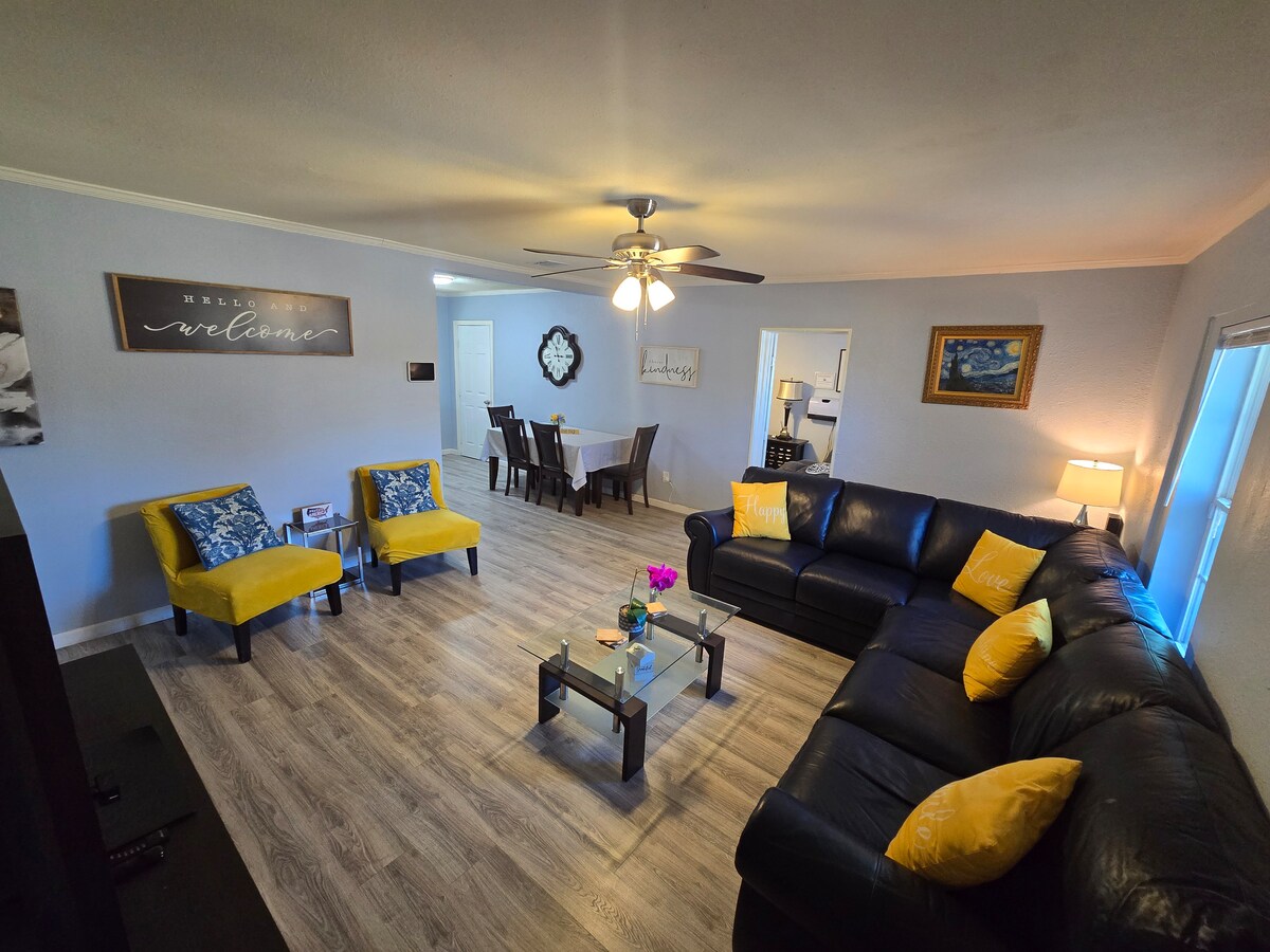 🎯 Fully themed Denison getaway 🎬 Theater-style living room for movie nights 🎮 Gaming bedroom w/ retro console + 2 arcade games 🌌 Star Wars bedroom for Jedi dreams 🚚 Classic trucks master bedroom 🌳 Shaded backyard & large balcony for grilling & wine 🍷 Close to downtown shops, restaurants & wineries 🏞️ Short drive to Lake Texoma, Choctaw & more 🛏 3 beds | 🛁 2 baths | Sleeps 6 ✔ Fast Wi-Fi ✔ Smart TVs ✔ Gaming ✔ Stocked Kitchen ✔ Washer/Dryer ✔ Free Parking