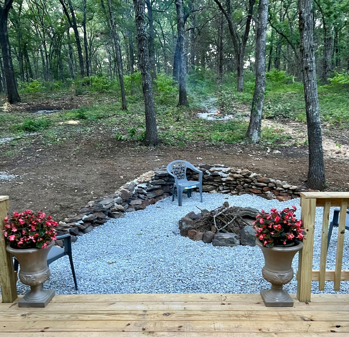 Escape city life in this little piece of heaven. Enjoy nature in this oasis getaway. We have 25 acres of forest, two ponds & amazing hiking trails. Sleeps 3. With a kitchenette and rain head shower. All bedding is provided. A tv with 200 channels, fridge, microwave and coffee maker for your convenience. Gather round the fire pit and grill. Then sip some coffee on the back deck in am. Texoma offers great fishing, boating and swimming. Feeling lucky? Visit the casinos! Can't wait to see y'all!