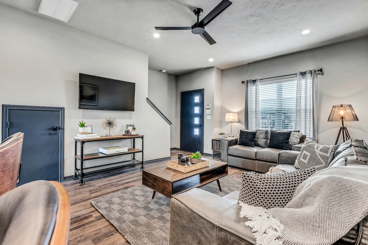 This spacious two-story condo is perfect for families and friends, offering three bedrooms and three and a half bathrooms. It features a fully equipped kitchen, dining area, living room, laundry room, small patio, and a private two-car garage. It comfortably sleeps up to eight people and is conveniently located near everything - Downtown Bryan (3.6 miles, 9 min), A&M College Station Campus (2.9 miles, 7 min), Texas A&M Rellis Campus (7.6 miles, 12 min), Blinn College Campus (3.3 miles, 9 min).