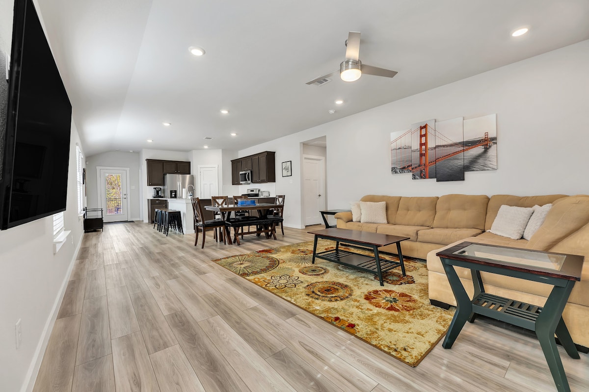 ✨ Our home books quickly around holidays and weekends, so we always recommend reserving early to lock in your dates. Your perfect retreat in Aggieland! This modern ranch home sleeps upto 9, offers an open layout, an 85” Smart TV, EV charger, fast WiFi, and a fully equipped kitchen. Minutes to Texas A&M, Baylor Scott & White Hospital, Santa's Wonderland — the ideal stay for families, groups, and game-day trips. College Station STR Permit#: STR2021-000013