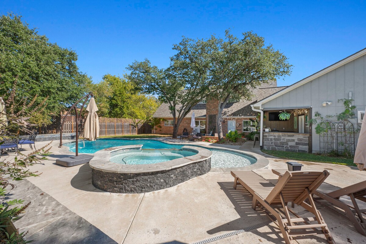 后院绿洲,带私人泳池/水疗中心,距离TAMU 2英里