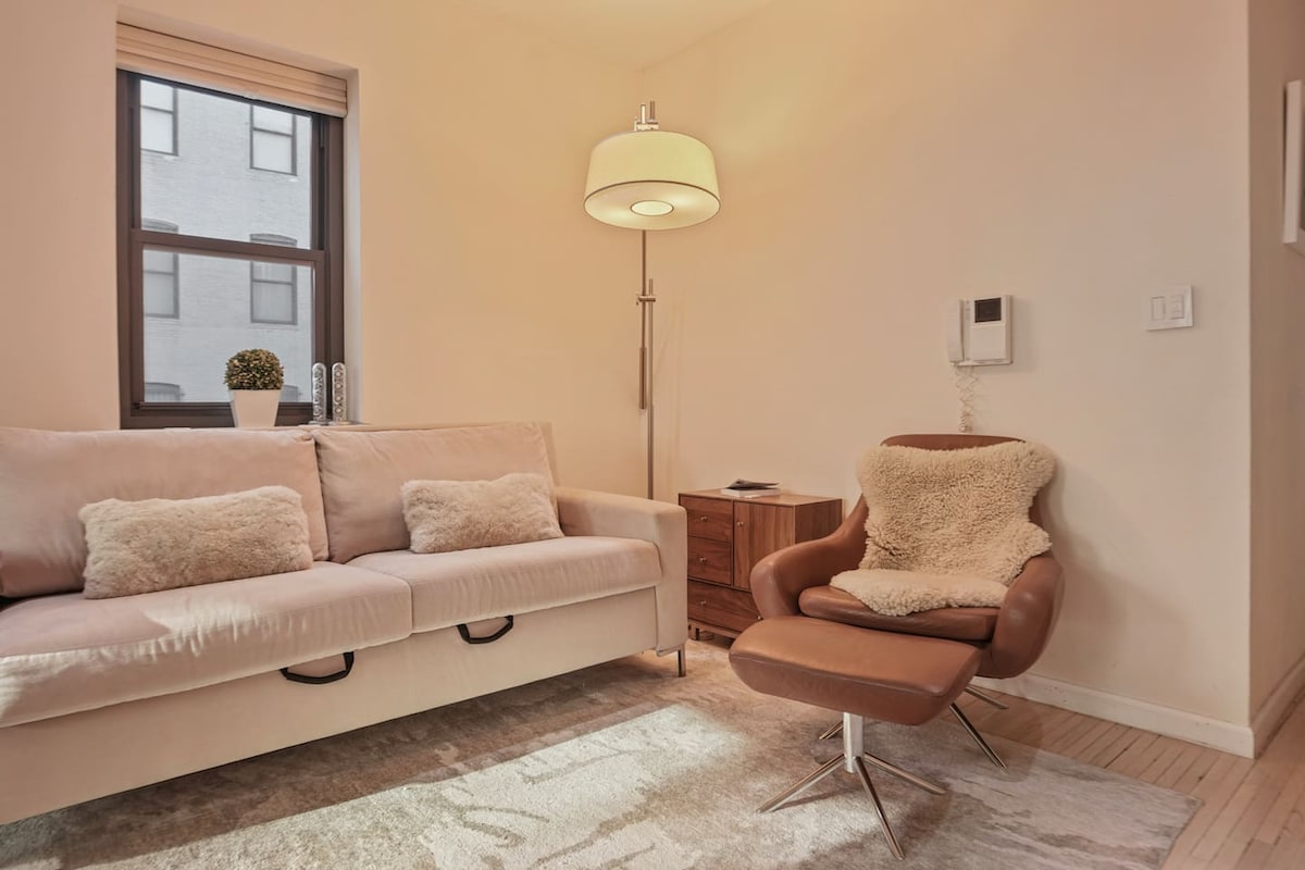 Experience timeless New York charm at The Mansfield Residence, a storied building that once echoed with the glamour of Gatsby-era soirées. This beautifully appointed apartment blends old-world character with contemporary comfort, creating an ideal retreat for families or close friends. Two connected bedrooms are divided by a room partition, offering both intimacy and functionality for your Midtown stay.