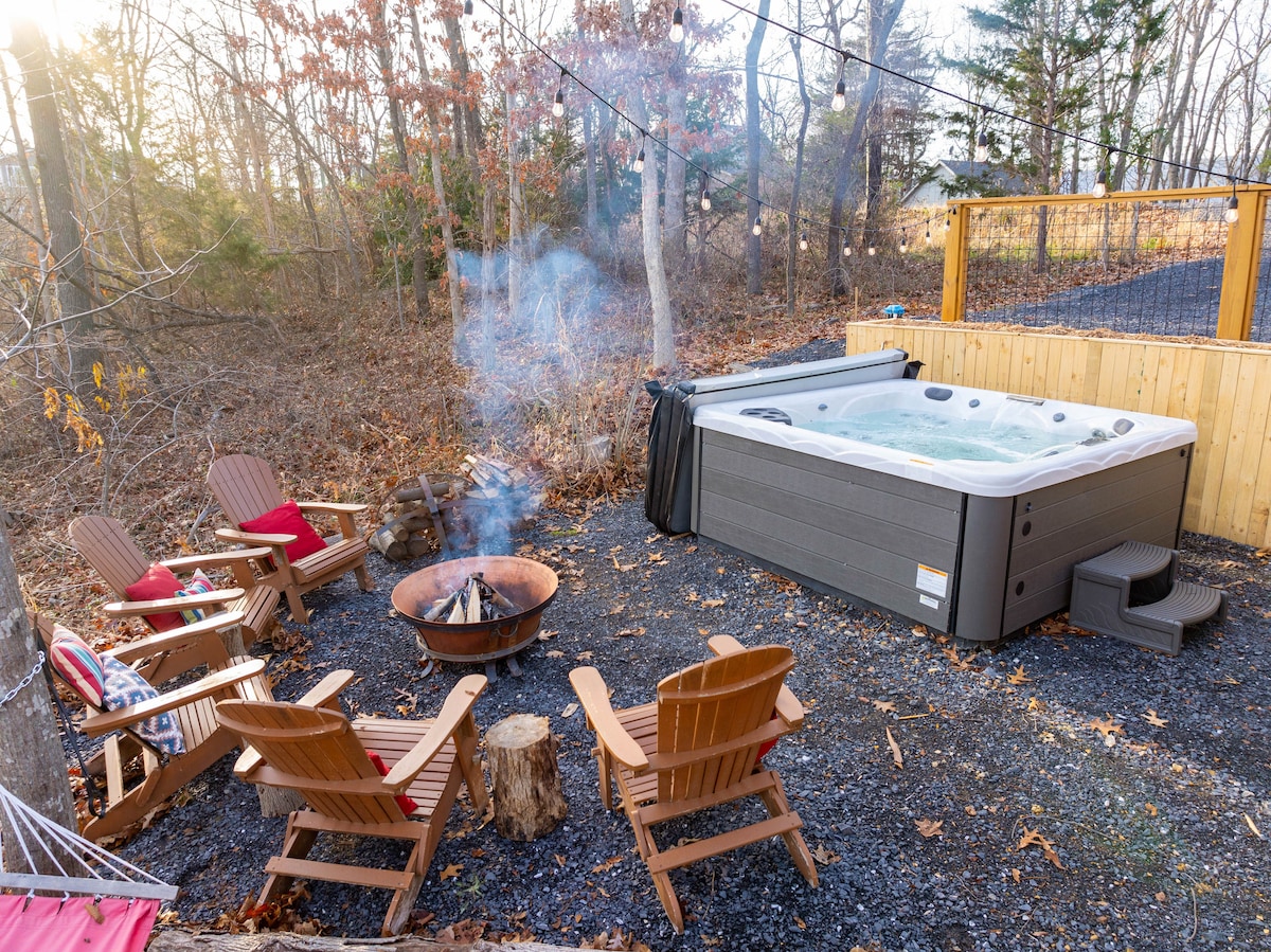 平均评分 5 分(满分 5 分),共 58 条评价全新豪华小木屋,带热水浴缸、火坑和四季房