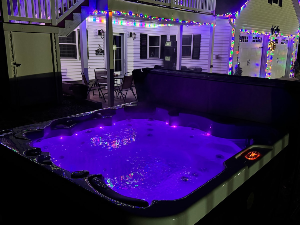 The Tortoise and the Bear B&B: Where Relaxation Meets Adventure Features: - 6-person premium saltwater hot tub - 1 Gbps fiber internet for seamless remote work/streaming - Two bedrooms with Sleep Number dual-side queen beds - Fully stocked kitchen - Multiple outdoor dining/seating areas Location: - 10-minute walk to Lake Laura with a 3-mile path - 5-minute drive to Bryce mountain skiing, biking, and golf Our home features a spiral staircase which may not be suitable for very young children